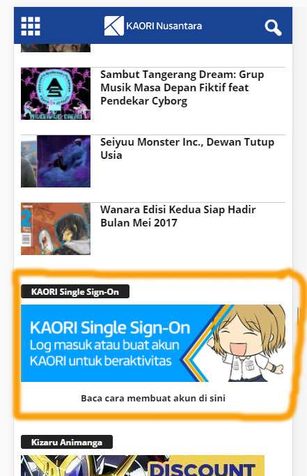 Di KAORI Newsline, akses SSO dapat dilakukan dengan mengklik bagian kanan (atau bawah pada tampilan mobile) dan pengguna akan diarahkan ke halaman KAORI NG untuk log masuk. Setelah log masuk, pengguna otomatis kembali ke halaman yang dikunjungi sebelumnya.