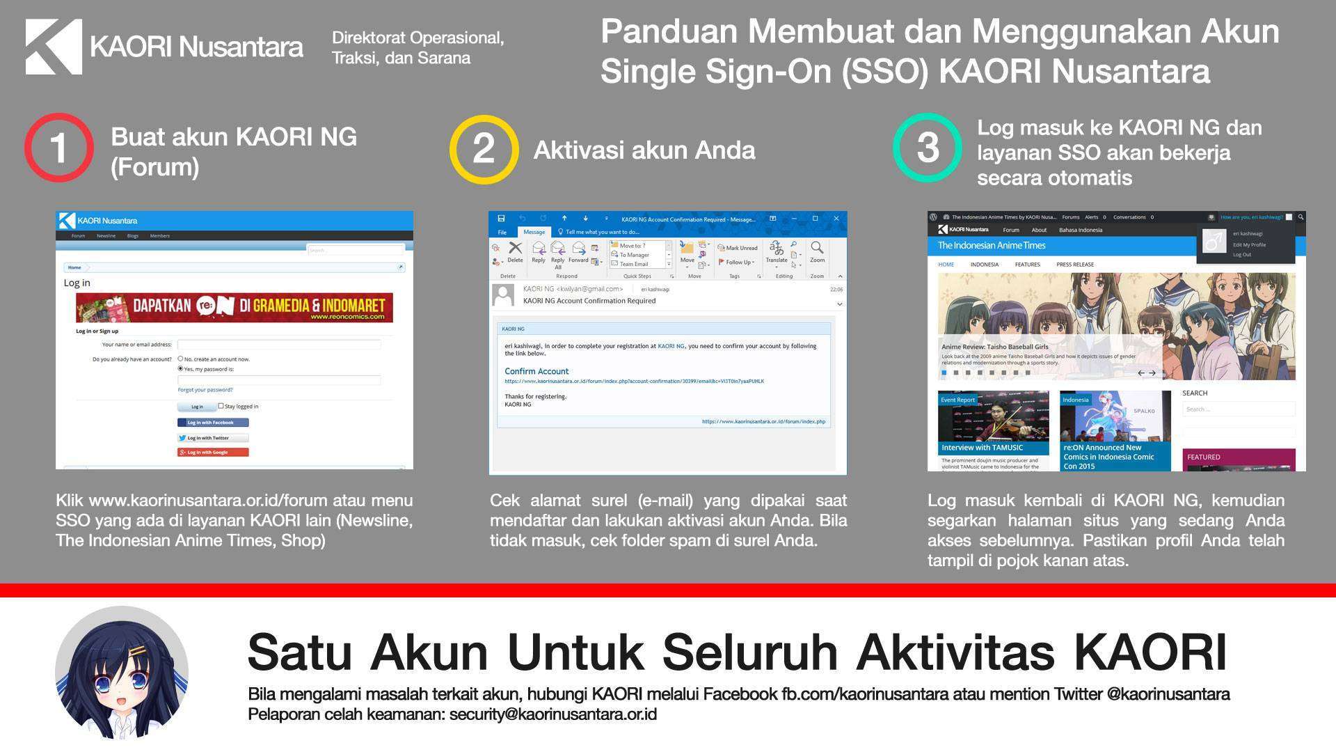 Bila mengalami masalah dengan proses SSO, kontak KAORI melalui sarana media sosial berikut ini: