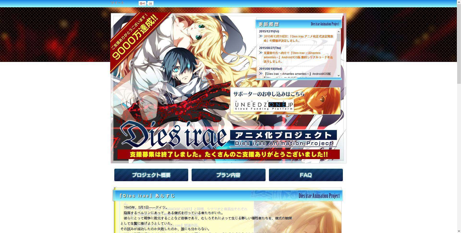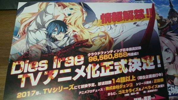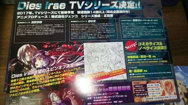 Adaptasi anime dari novel visual Dies Irae akan ditayangkan pada 2017 dan sketsanya akan ditampilkan dalam acara publik pada Januari 2016.