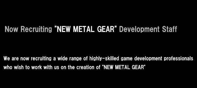 Dengan minggatnya Hideo Kojima dari Konami beberapa waktu lalu, nampaknya serial Metal Gear akan tetap dilanjutkan oleh pihak Konami. Paling tidak, hal itu terlihat ketika Konami kini tengah membuka lowongan kerja untuk membentuk tim kreatif baru untuk meneruskan serial Metal Gear tanpa keterlibatan Hideo Kojima.