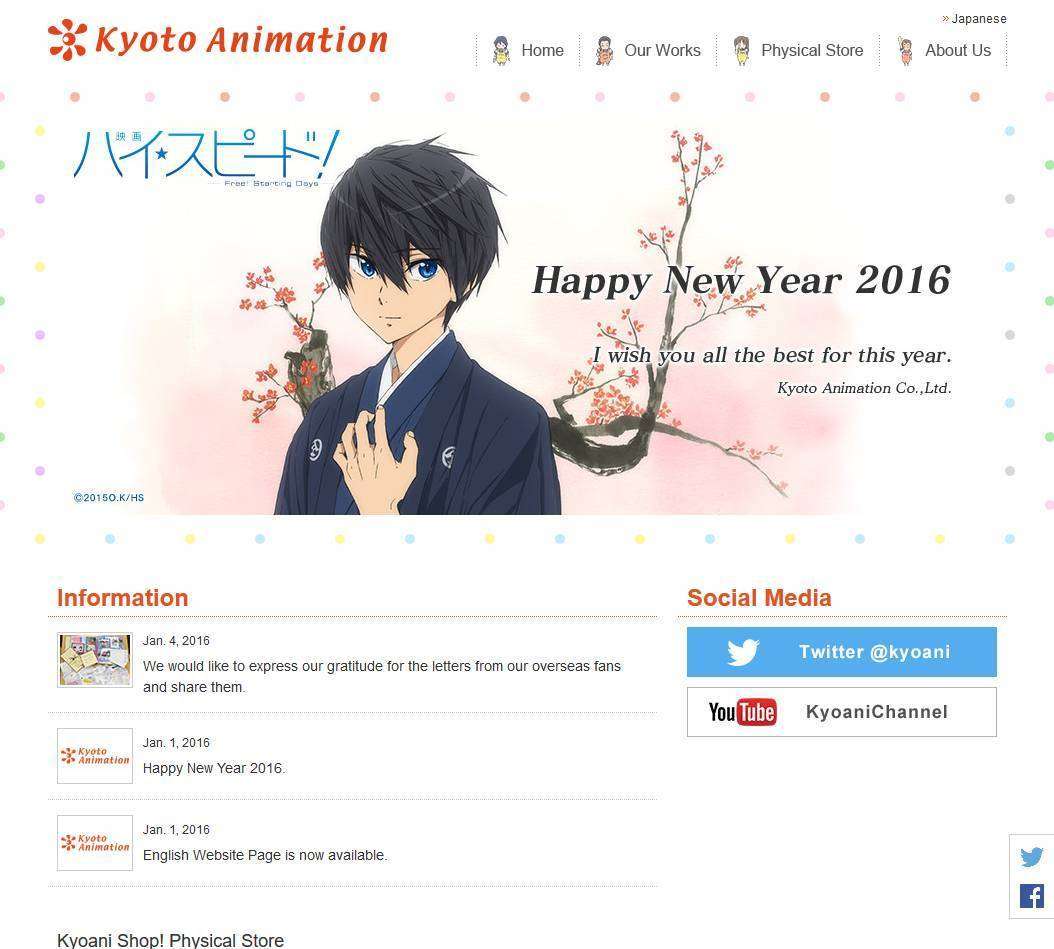 English website page for Kyoto Animation Co.,Ltd. is now available!https://t.co/Nc1uyEOA9K— 京都アニメーション (@kyoani) December 31, 2015