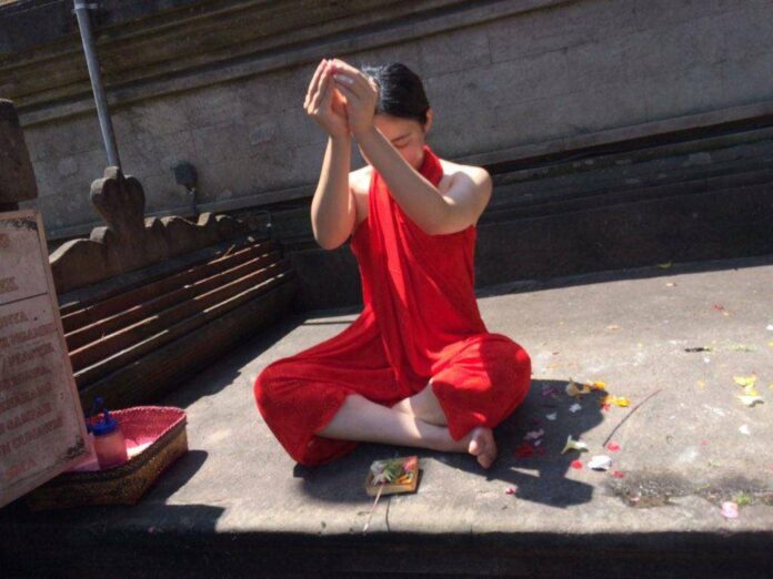 Dalam foto lain yang diunggah melalui akun Twitternya, artis yang mengaku blasteran Arab-Jepang ini juga menikmati indahnya berlibur di Bali dan mempelajari seni tradisional Bali.