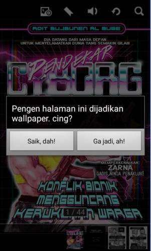 Kabar gembira datang (mungkin) dari masa depan. Pasalnya Pendekar Cyborg, sebuah komik super futuristik yang (katanya) berasal dari masa depan kini hadir dalam bentuk digital melalui aplikasi Google Play. Cukup dengan 12.500 Rupiah, anda dapat mengakses komik bertehnolohy tinggi ini di perangkat android dengan spesifikasi sebagai berikut: