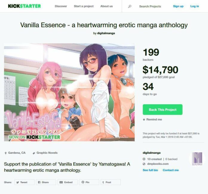 Penerbit komik Digitalmanga di Amerika Serikat meluncurkan proyek crowdfunding pertama mereka untuk komik bertema hentai. Sebagai permulaan, komik Vanilla Essence karya Yamatogawa akan diterjemahkan ke dalam bahasa Inggris dan tersedia dalam versi digital dan cetak.