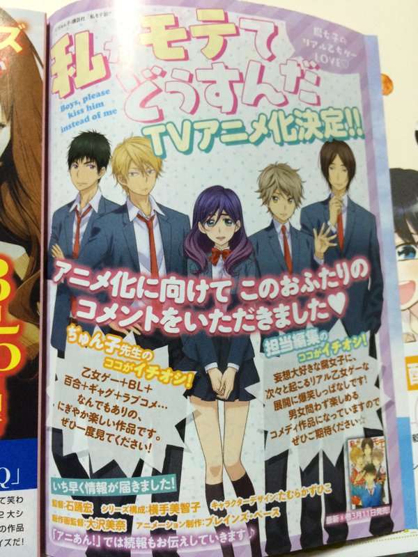 Baru-baru ini dikabarkan akan ada satu lagi seri komik yang akan diadaptasi menjadi sebuah serial anime. Dalam edisi terbaru majalah Bessatsu Friend terbitan Kodansha, disebutkan bahwa seri komik Watashi ga Motete Dousunda (Hey, I’m Popular dalam judul yang diterbitkan di Indonesia) akan diadaptasi menjadi sebuah seri anime.