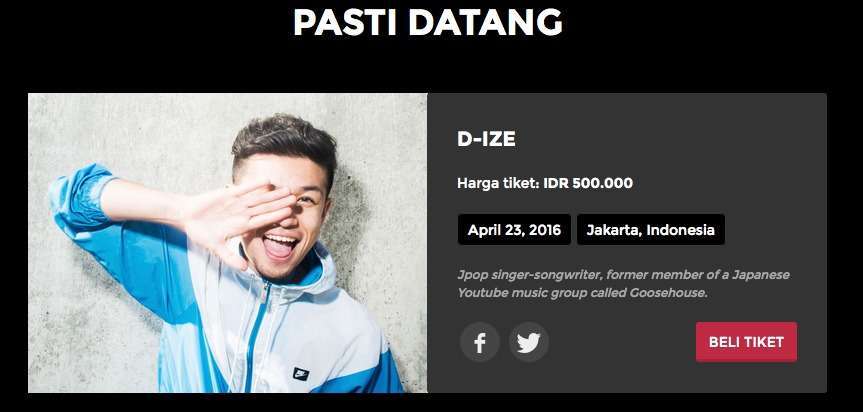 Sebagaimana telah diberitakan sebelumnya, salah satu mantan personil grup band Goose House, d-iZe menyatakan akan menggelar sebuah konser di Jakarta, Indonesia.