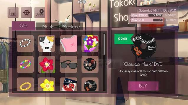 - Energi, kesehatan, uang, pergantian siang dan malam, serta love status system.