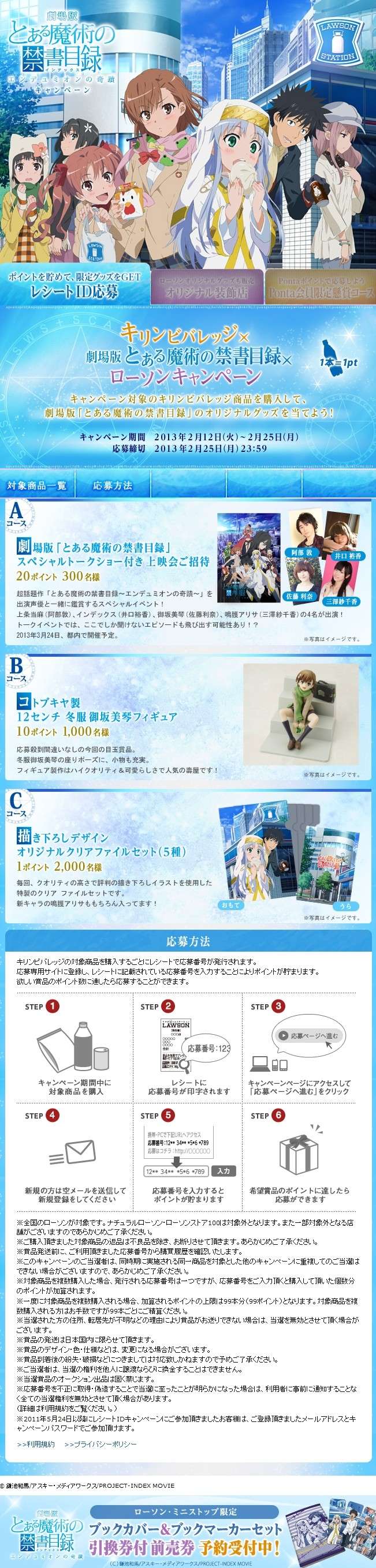 Lawson Station Jepang bekerja sama dengan To Aru Majutsu no Index meluncurkan promo menarik bagi para pelanggannya jelang penayangan film Index mendatang.