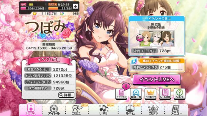 Untuk memainkan lagu event kali ini, pemain harus mengumpulkan poin terlebih dahulu dengan cara memainkan lagu biasa. Apabila pemain telah mengumpulkan sejumlah poin, poin tersebut dapat dimasukkan ke akumulasi poin event dengan cara memainkan Lagu Tsubomi. Tsubomi adalah lagu yang terdapat pada album Absolute NIne dan dinyanyikan oleh Syuko Shiomi, Kaede Takagaki, Miku Maekawa, Shiki Ichinose, and Yumi Aiba. Lagu ini memiliki tingkat kesulitan berturut-turut (debut-master) 8, 14, 18 dan 25, dan poin yang dibutuhkan untuk memainkan lagu ini berturut-turut (debut-master) adalah 75, 90, 120, dan 150.