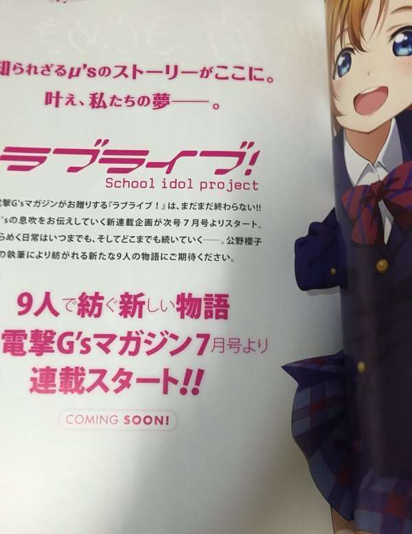 Dalam caption yang diberikan, kesembilan anggota μ’s “akan berlanjut dengan cerita yang baru” dan akan dimulai dalam majalah Dengeki G’s tersebut.
