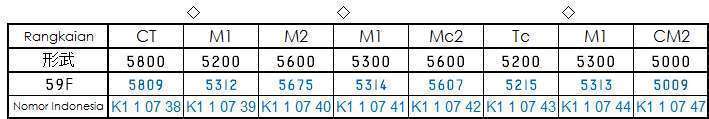 Set 5809F sendiri mulai beroperasi di Jakarta pada 6 Juni 2007 dan mendapatkan penomoran baru K1 1 07 38 sampai K1 1 07 47 (digunakan setelah tahun 2013). Setelah tiba di Jakarta, warna biru jalur Tozai pun diganti dengan warna hijau-kuning khas Divisi Jabotabek saat itu. Pada bagian muka, posisi yang sebelumnya ditempati logo Tokyo Metro pun ditutup dengan plat Divisi Jabotabek khas dengan warna hijaunya. Kemudian, rangkaian ini pun ditempatkan di depo Bogor dan lebih sering berdinas sebagai KRL Pakuan Ekspres.