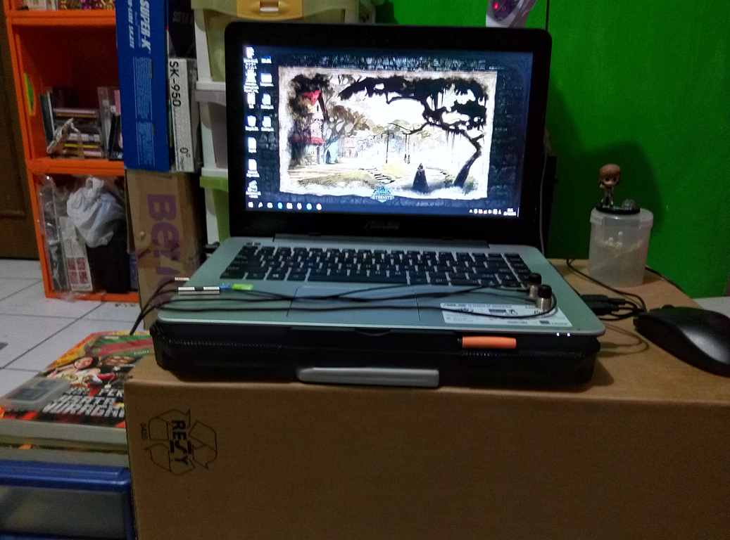 Sesederhana dan serumit yang dilihat, itu adalah tempat saya “bekerja” sehari-hari. “Pekerjaan” yang saya lakukan pun tidak pernah jauh-jauh dari jantung meja kerja ini, yaitu komputernya. Di sana saya menulis dan menerjemahkan artikel KAORI, meskipun sebenarnya alokasi terbanyak digunakan untuk mengakses socmed atau kegiatan lain. Bergerak dari sini, di sebelah kanan komputer dapat terlihat tumpukan barang yang sewaktu-waktu akan dibutuhkan, meskipun waktunya mungkin berada dalam periode “di mana semua planet segaris dalam tata surya” atau semacamnya. Percayalah, kerusuhan sempat saya rapikan, tapi mereka semua punya kaki semu yang bergerak sewaktu saya berpaling. Seram.