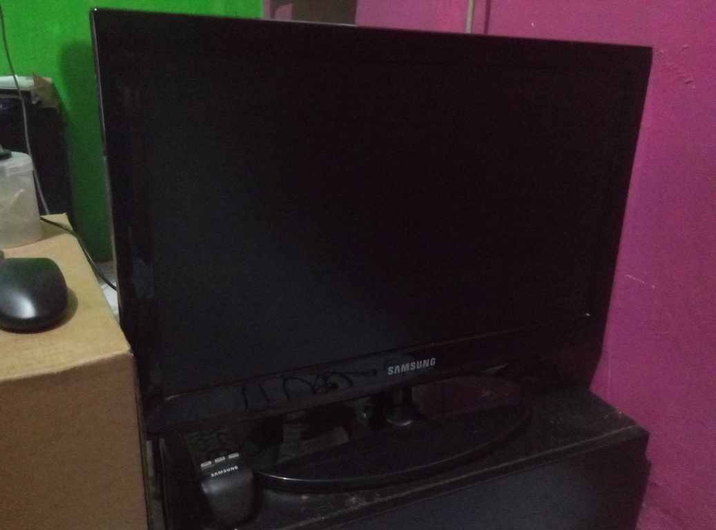 Di sisi kanan meja utama terdapat TV LCD 22” yang diletakkan di atas bekas casing PC yang sudah berumur lebih dari sepuluh tahun. Televisi ini sudah mendukung spesifikasi Full HD tetapi sayangnya belum menggunakan teknologi LED sehingga panas yang dihasilkan cukup signifikan sehingga mempengaruhi suhu ruangan kerja saya. TV ini saya gunakan sebagai monitor cadangan ataupun untuk menikmati hiburan audio visual yang dioptimalkan pada resolusi 1080p. Belum tersedianya saluran televisi serta kurang optimalnya tampilan teks dalam resolusi tinggi menyebabkan saya lebih sering menggunakan monitor laptop dibandingkan memanfaatkan televisi yang ada.