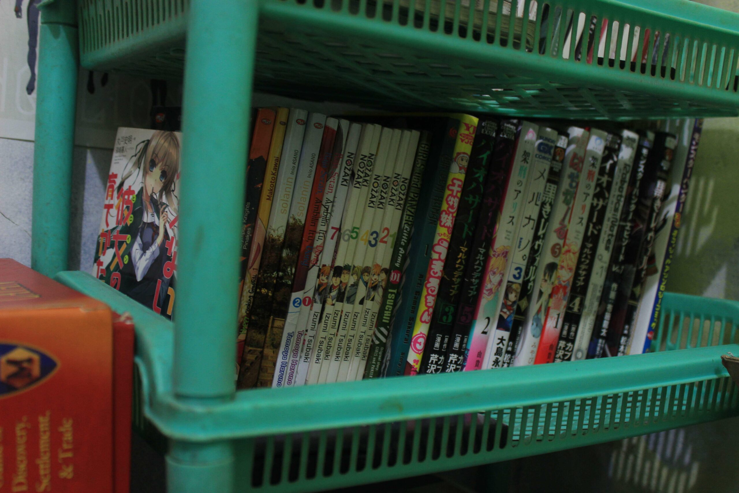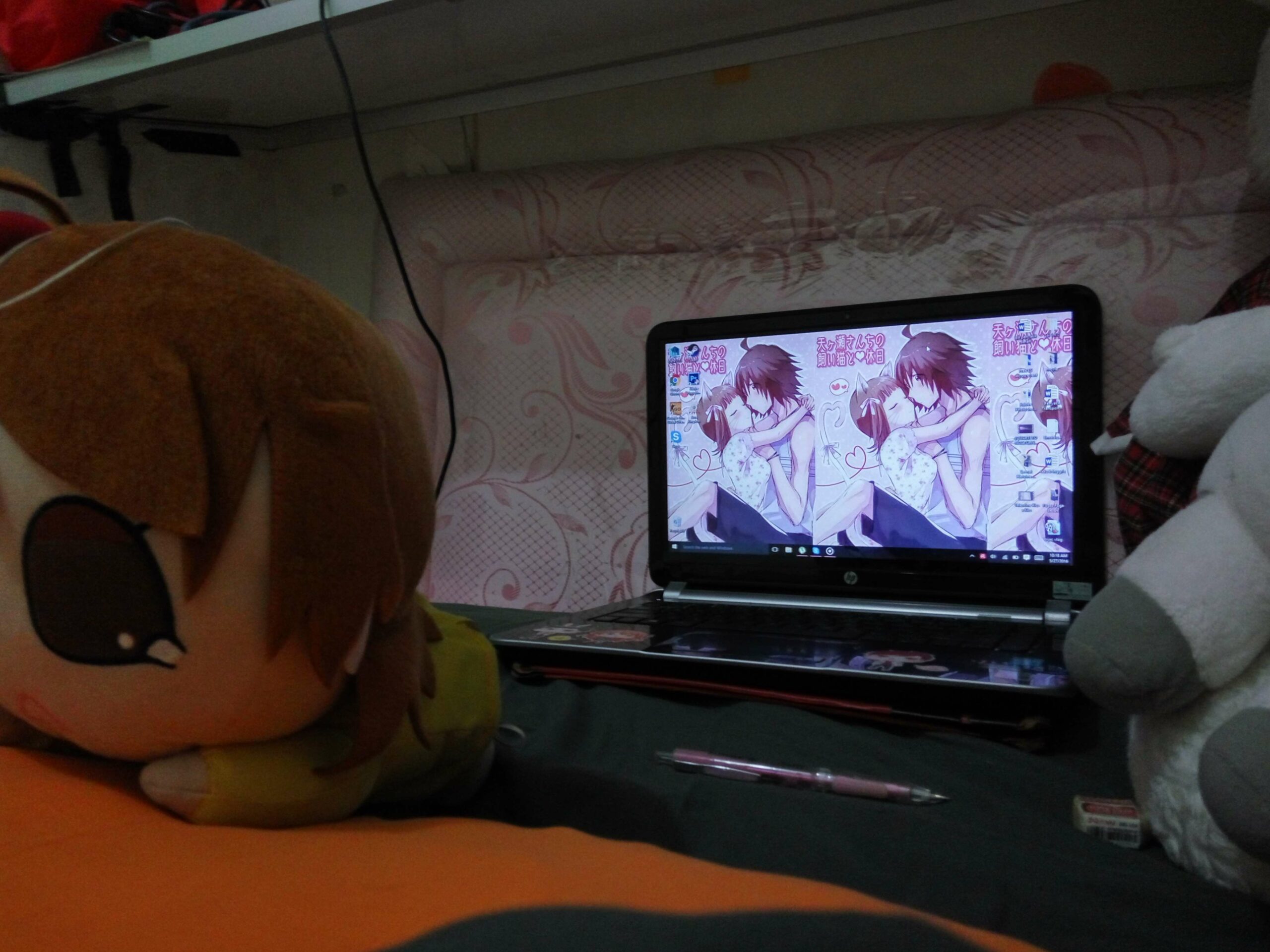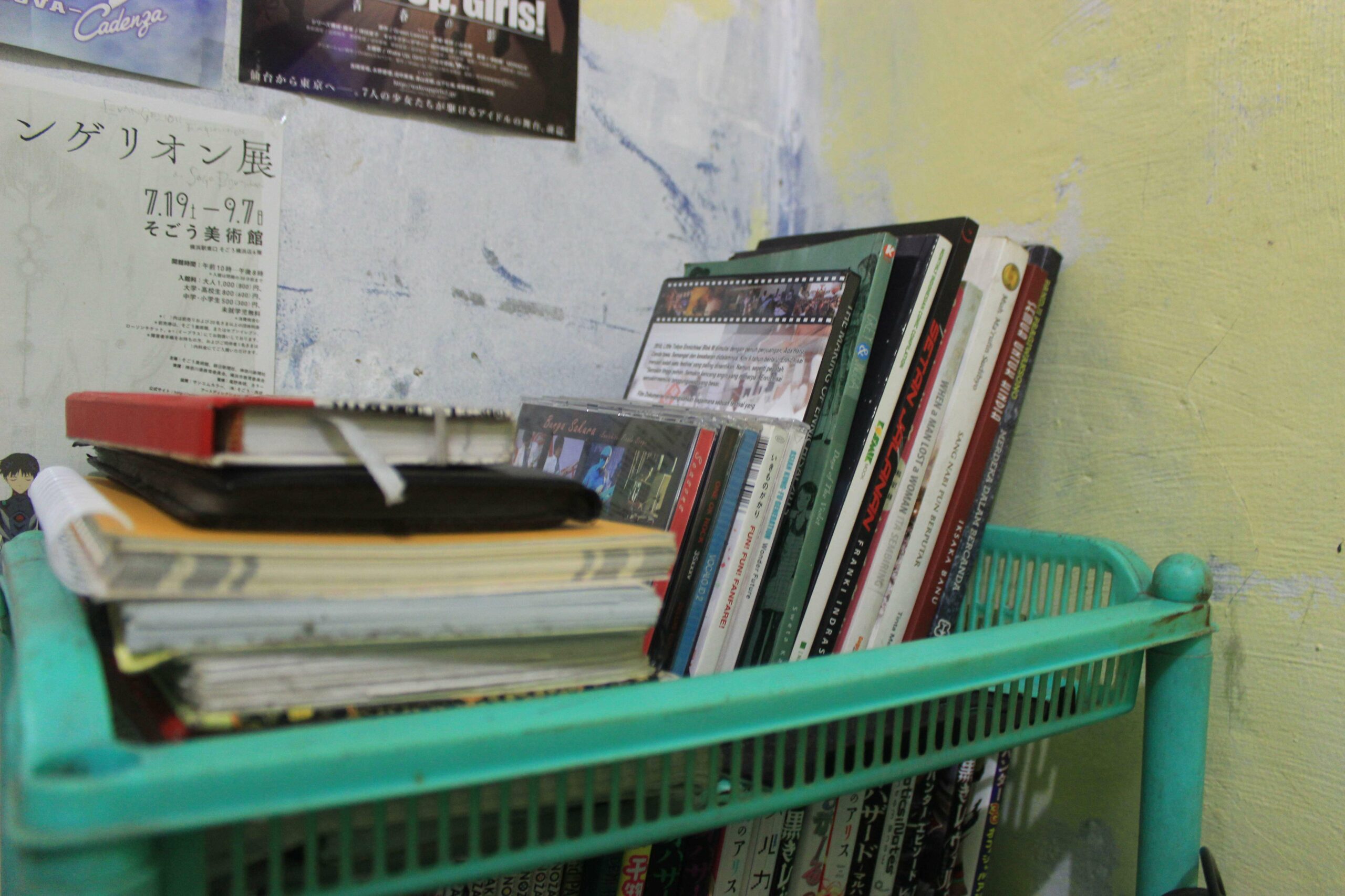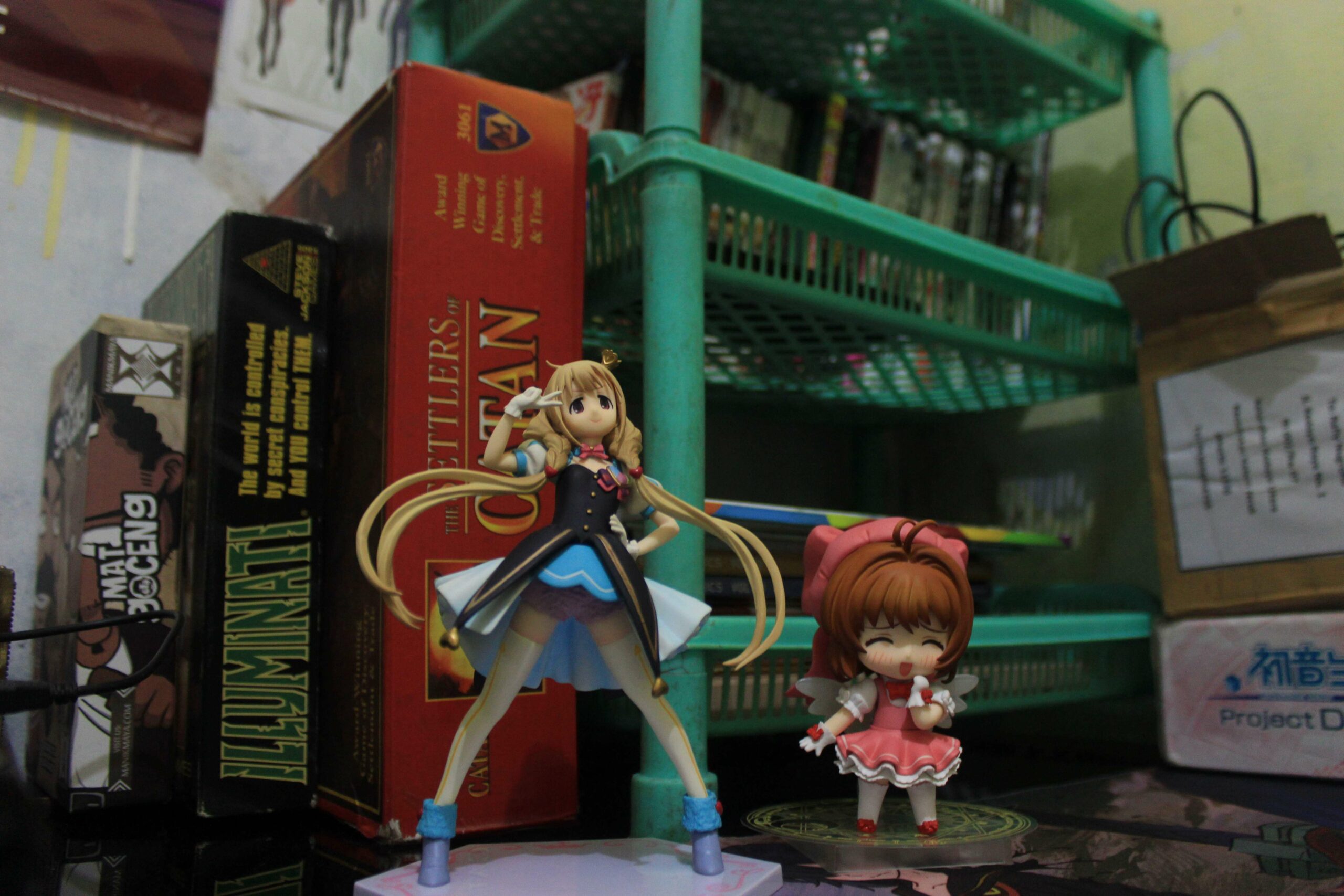 Tidak ada yang mencolok selain mungkin adanya kotak tisu di belakang laptop milik kakak saya (ya ini laptop sebenarnya punya kakak saya namun saya pakai karena ia sudah ga memakai lagi). Tenang-tenang saya ini anak baik-baik serta rajin menabung jadi tisu yang berada di belakang laptop ini digunakan untuk keperluan yang semestinya, seperti membersihkan laptop yang memang sangat cepat kotor karena debu. Oh iya kotak tisu itu juga ditaruh karena saya sangat hobi terjangkit flu jadi ya gitu deh. Ada juga playmat Kill la Kill yang merupakan hadiah ulang tahun saya ke-20 dari toko Aethernity Good Guy Games biasa saya main kartu (Thankies ya Jim!). Di sana juga ada deck case berisi koleksi card game saya, ya saya hobi bermain Magic: The Gathering, Cardfight!! Vanguard, Yu-Gi-Oh!, Weiss Schwarz, serta Wixoss. Selain itu ada juga koleksi board game saya yakni Settlers of Catan, Illuminati dan Mat Goceng. Figur Anzu Futaba yang saya beli dari Dellamarsto Bagus (staf IAT) dan nendoroid Sakura hadiah dari Mangamon menemani hari-hari saya di meja ini. Di ujung meja ini ada juga rak buku sederhana yang berisi komik-komik lokal, photobook re:ON, komik asli dari Jepang, komik Jepang terbitan Indonesia, dan buku non-komik seperti novel dan buku bacaan lainnya, dan beberapa buku ini saya dapat gratis langsung dari penulisnya loh! (seperti buku When a Man Lost a Woman yang saya langsung dapat dari si penulis, Ita Sembiring, namun belum sempat dibaca sih).