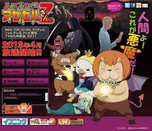 Musim kedua dari seri anime Yondemasu yo, Azazel-san akan tayang pada musim semi tahun ini, mulai April 2013. Untuk tanggalnya sendiri sampai berita ini diturunkan belum diumumkan. Tidak ada perubahan pada jajaran seiyuu yang akan mengambil bagian dalam season 2 ini alias masih sama seperti season pertama. Berikut jajaran seiyuu dalam anime yang diadaptasi dari dari manga berjudul sama.