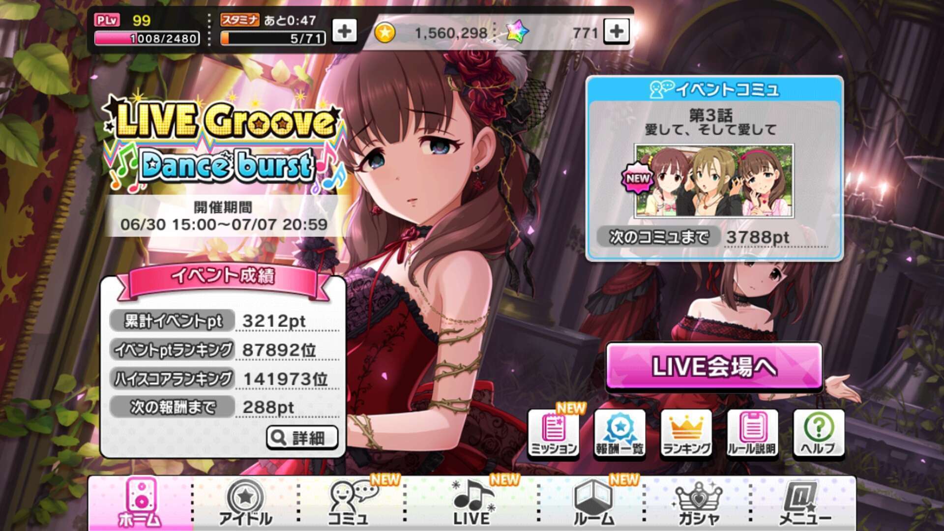 Seperti event Live Groove sebelumnya, pemain bisa memainkan 4 lagu sekaligus secara Medley. Event kali ini adalah event Dance Burst dimana Idol Unit yang dimainkan dalam event akan mendapatkan tambahan status Dance hingga 150%.