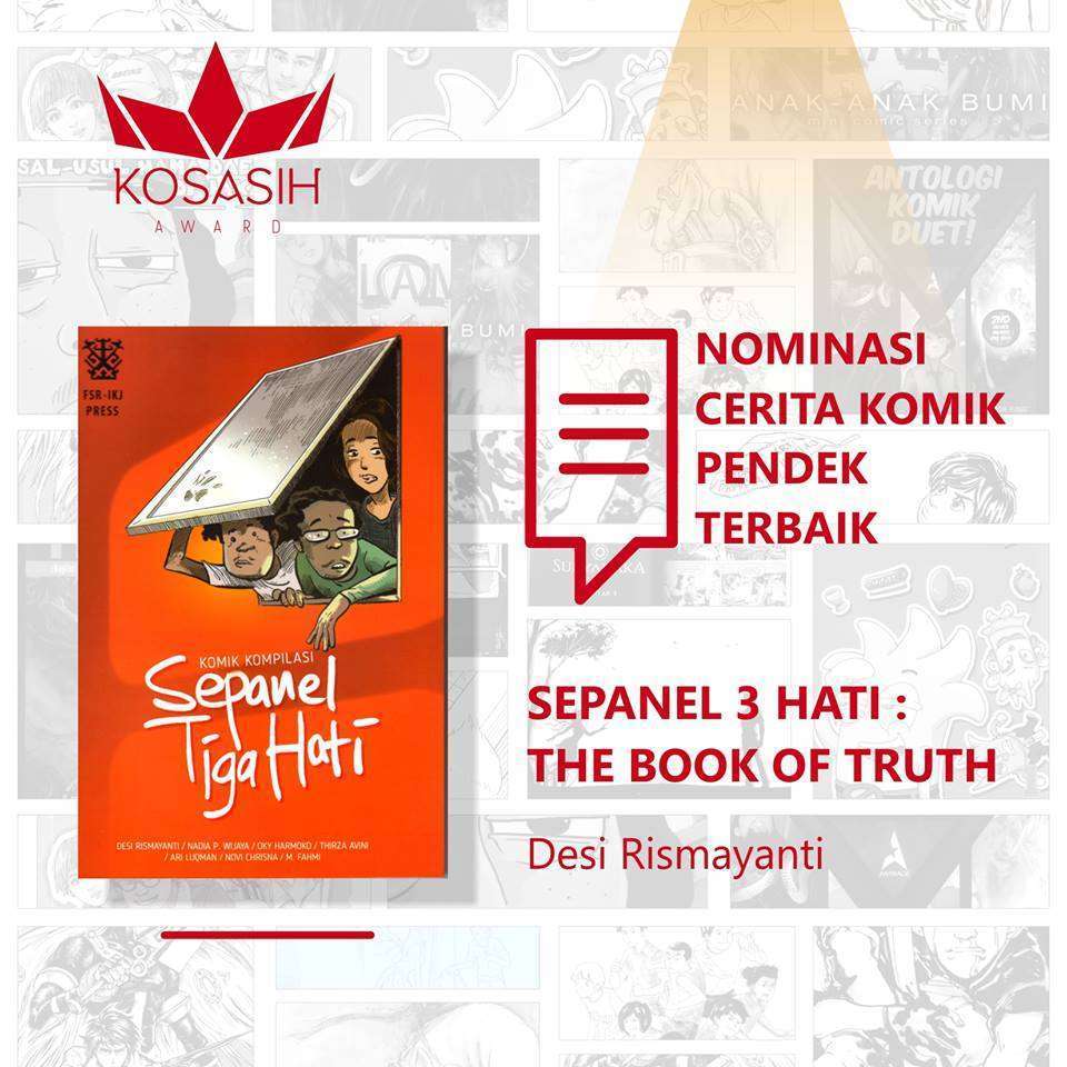 Sebagaimana telah diberitakan sebelumnya, ajang penghargaan tertinggi komik Indonesia, Kosasih Award, kembali digelar untuk ketiga kalinya. Seperti tahun sebelumnya, Kosasih Award kali ini diselenggarakan bersamaan dengan Popcon Asia di Jakarta Convention Center, 12 Agustus 2016.