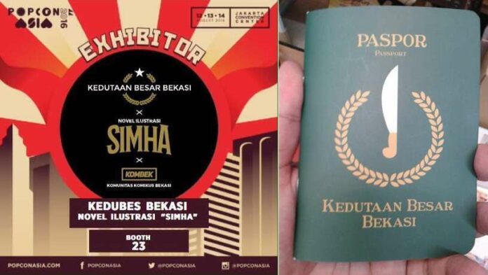 Jangan lupa datang ke Popcon Asia 2016 dan sowan ke “Kedutaan Besar Bekasi”. Tersaji berbagai karya-karya kreatif dari wilayah Bekasi, seperti novel ilustrasi Simha, komik-komik karya Komunitas Komikus Bekasi, dan tentu saja “paspor” Bekasi.