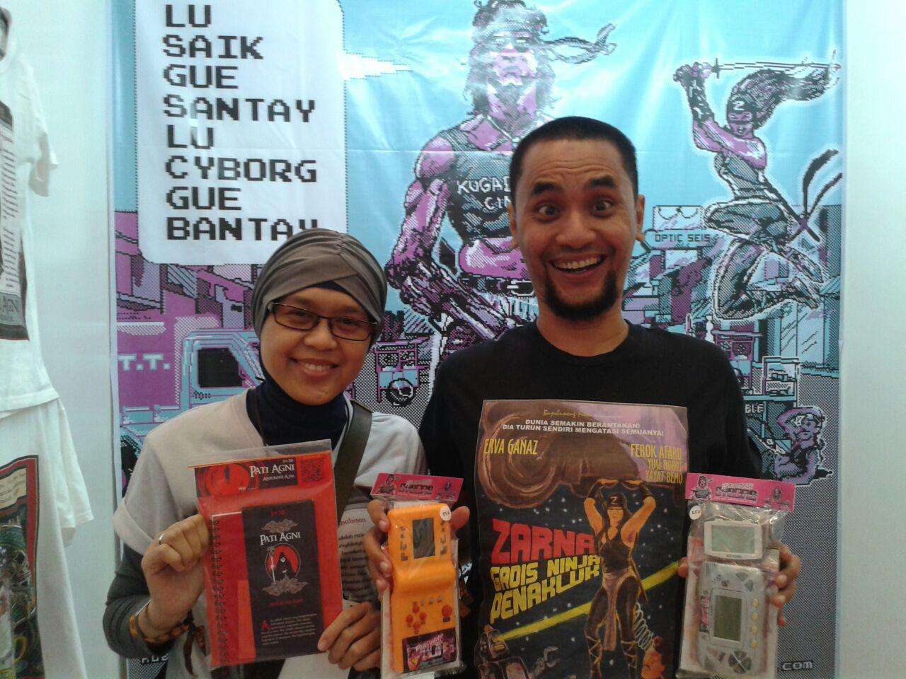 Dan tentu saja, komik (konon katanya) dari Masa Depan, Pendekar Cyborg juga turut dijajakan! Yang menarik, pada perhelatan ini, komik yang sudah terbit dua edisi itu turut dibundel dengan permainan video game handheld lawas Gimbot!