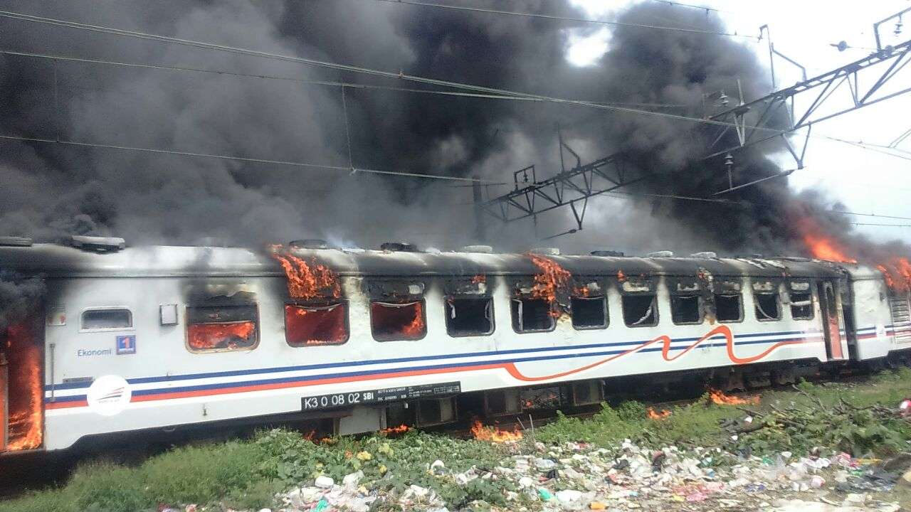 Saat ini petugas pemadam kebakar, warga dan petugas PT KAI sibuk memadamkan api. Akibat kejadian ini rangkaian KA Kertajaya sementara masih belum diberangkatkan dari Tanjung Priok menuju Pasar Senen, selain itu perjalanan KA Commuter Line lintas Jakarta Kota – Tanjung Priok juga dibatalkan sementara karena proses pemadaman.