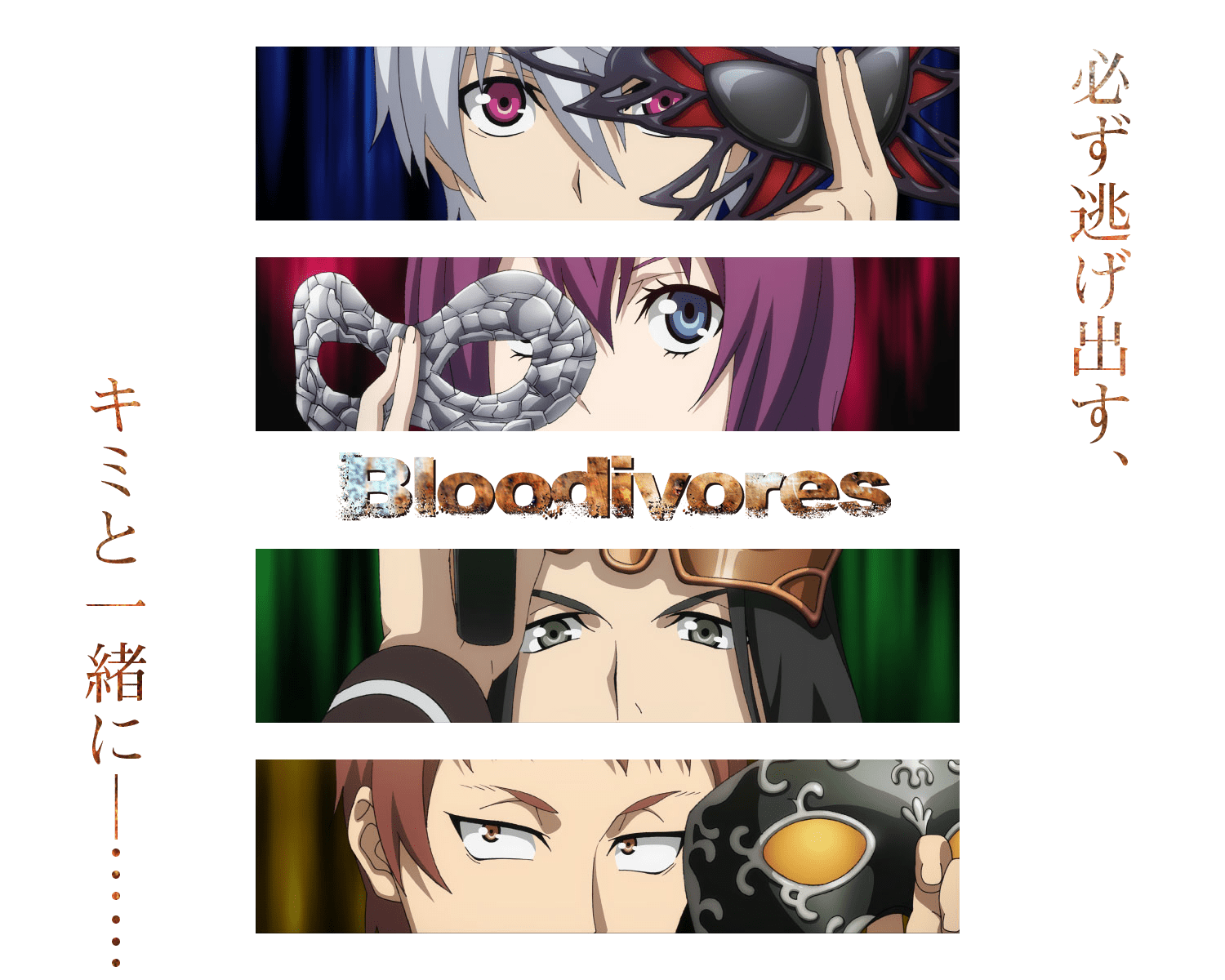 Penyanyi asal Tiongkok, Mili, akan mengisi lagu pembuka yang berjudul Yu Wo Gongming dan lagu penutup quite squal dibawakan oleh Siraph. Bloodivores akan tayang di Jepang mulai 1 Oktober 2016 di saluran televisi TOKYO MX.