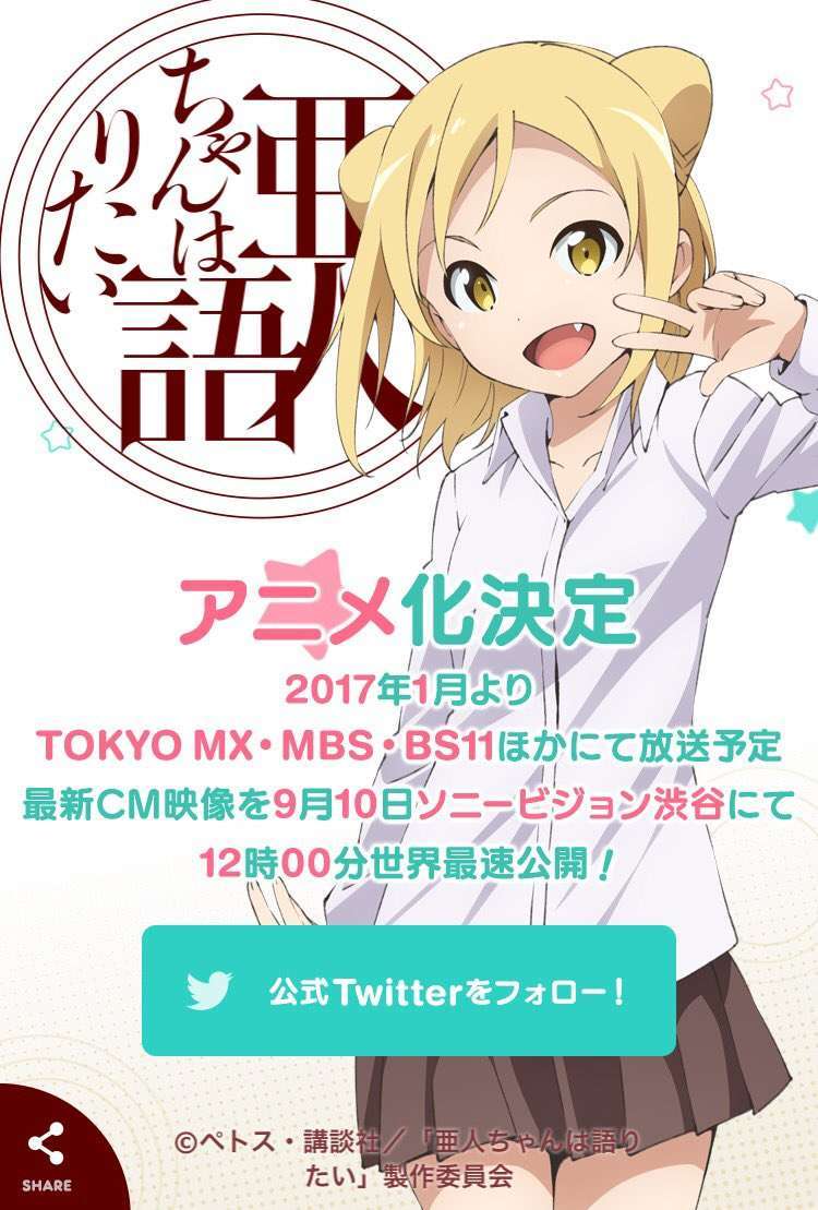 Akun Twitter dan laman resmi dari seri anime Demi-chan wa Kataritai baru-baru ini merilis sebuah visual terbaru dari karakter Hikari Takanashi. Selain visual terbaru, dirilis juga konfirmasi bahwa iklan teaser seri anime ini akan tayang perdana di “SONY Vision Shibuya” pada 10 September 2016 12:00 JST (14:00 WIB).