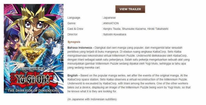 Sebagaimana telah diberitakan sebelumnya, ODEX Private Limited baru-baru ini telah mengumumkan bahwasanya film terbaru dari anime Yu-Gi-Oh! yang berjudul Yu-Gi-Oh!: The Dark Side of Dimensions akan hadir di Indonesia. Jika tidak ada halangan, maka film tersebut akan memulai debutnya di Indonesia pada 9 November 2016.