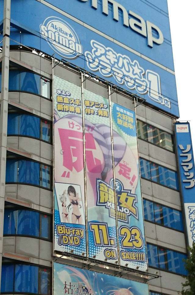 Sebagaimana foto-foto dari akun Twitter @kaztsu ini, nampak anime serius yang satu ini memasang banner promosi yang cukup besar dan serius di gedung Akiba Softmap, di Akihabara, Tokyo, Jepang.