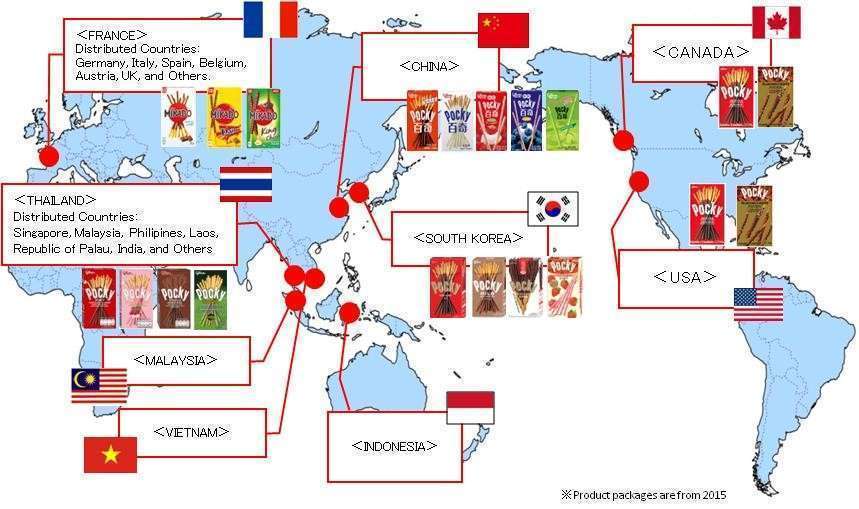 Glico mengembangkan bisnisnya secara cepat di seluruh dunia, terutama di wilayah ASEAN. Pocky merupakan pelari garis depan sekaligus penyumbang utama pertumbuhan. Melalui 500 juta kemasan yang terjual di 30 negara, Pocky menjadi merek yang dicintai oleh dunia.