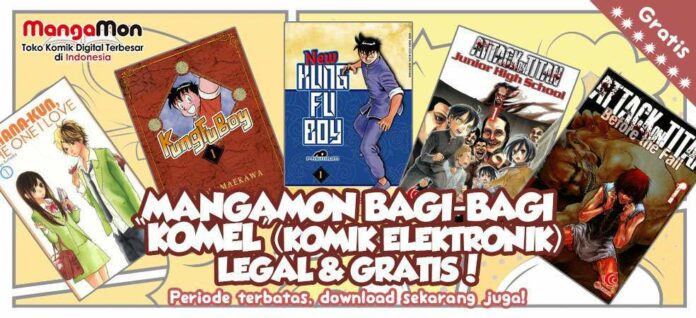 Pada hari senin, 14 November – 11 Desember 2016 Manga-Mon akan mengadakan Promosi “Manga-Mon Bagi-bagi Komel (Komik Elektronik) Legal Gratis!” dimana kami membuka akses kepada seluruh user untuk dapat membeli komel pilihan tersebut secara cuma-cuma alias gratis dan selamanya bisa dibaca secara online di akun user masing-masing.