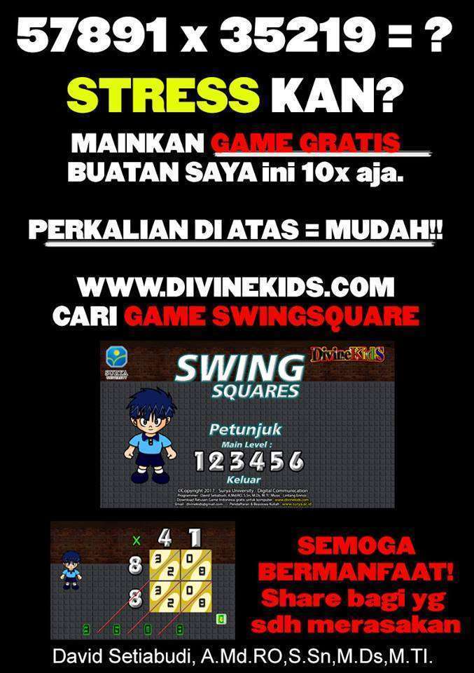 DivineKids kembali mempersembahkan game terbarunya yang brjudul Swing Squares. Game ini akan mengajak pemainnya bukan hanya bermain game, tetapi juga belajar matematika dengan cara yang menghibur dan menyenangkan.