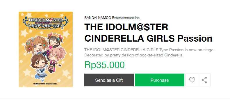 Tema The Idolm@ster Cinderella Girls Passion ini bisa dibeli melalui menu Creator’s Theme di aplikasi Line. Tema ini bisa diunduh dengan harga 150 Line Points atau setara dengan Rp35.000.