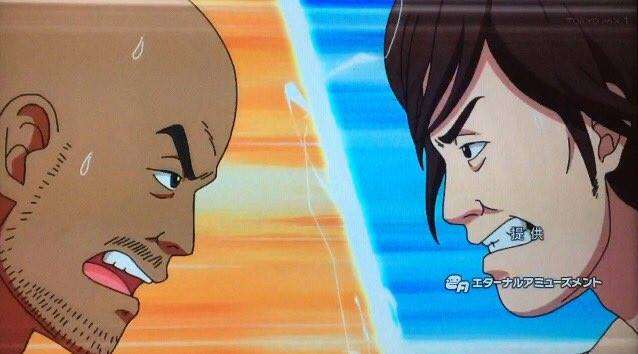 Intip beberapa screenshot dari penampilan Kento Miyahara (bercelana merah) dan Jun Akiyama (bercelana putih) di anime ini: