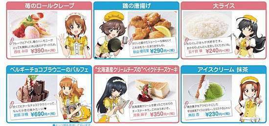 Akan ada enam pilihan kuliner lain yang akan ditampilkan pada kolaborasi ini. Namun enam menu ini tidak mendapat bonus clearfile. Enam menu ini terinspirasi dari karakter-karakter dari Girls und Panzer. Enam menu ini adalah strawberry roll crepe, chicken karaage, nasi putih, Belgian chocolate brownie parfait, Hokkaido cream cheese baked cheese cake dan matcha ice cream.