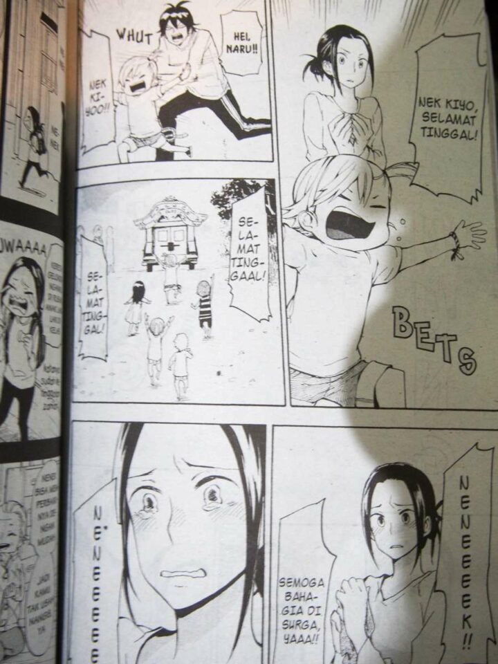 Ada juga bagian saat Handa harus pulang sementara ke Tokyo tanpa bilang ke anak-anak, dan para anak-anak harus merencanakan bagaimana memaksa Handa untuk kembali. Lalu cerita yang menurut saya paling menyentuh jiwa adalah saat salah satu sesepuh desa Nanattakego meninggal. Walaupun unsur komedinya masih berjalan secara tsukkomi, rasa duka menyelimuti seluruh arc ini.