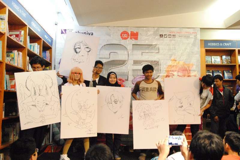 Khusus penggemar yang membeli sepaket dengan tempate sketsa komikus, penggemar re:ON comics bisa meminta tandatangan di buku komik re:ON dan juga minta dibuatkan sketsa oleh komikus sebelum dan sesudah acara dimulai.
