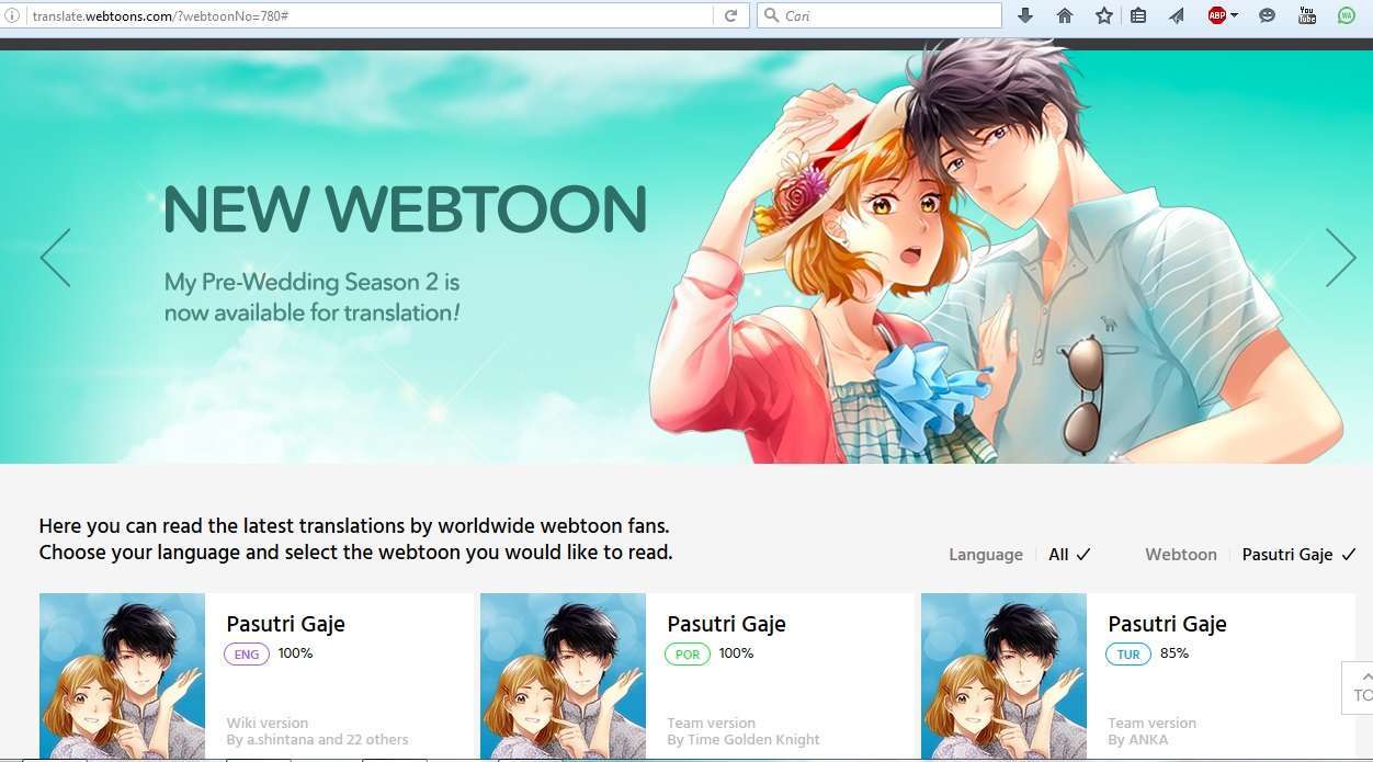Setelah memulai debutnya di Webtoon pada bulan Oktober tahun 2016 lalu, kini musim kedua dari komik My Pre-Wedding, Pasutri Gaje telah tersedia dalam berbagai bahasa. Sebagaimana disebutkan oleh sang komikus Annisa Nisfihani, komik ini telah hadir di Webtoon Translate, yang merupakan platform penerjemahan komik-komik Webtoon oleh para fans. Sampai berita ini ditulis, komik ini telah tersedia dalam bahasa Inggris, Portugis, Turki, Arab, Spanyol, dan Italia.