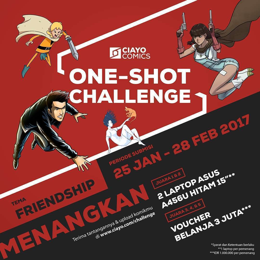 Untuk mengetahui lebih lanjut tentang syarat dan ketentuan CIAYO Comics One-shot Challenge, langsung ke www.ciayo.com/challenge