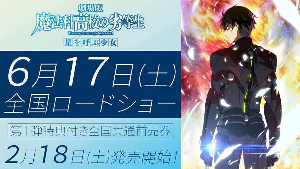 Sebagaimana telah diberitakan sebelumnya, kisah kakak beradik yang berjuang di sekolah sihir, Tatsuya Shiba dan Miyuki Shiba akan segera berlanjut dalam sebuah film animasi layar lebar. Serial novel ringan Mahouka Koukou no Rettousei akan diadaptasi menjadi sebuah movie.