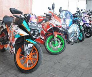 Berbagai sepeda motor itansha yang tampil dalam event ini juga bervariasi, mulai dari jenis yang paling umum seperti skutik dan motor bebek hingga jenis motor sport termasuk buatan Eropa. Demo pasang stiker itansha juga hadir dalam event ini. Namun sayangnya dari penataan jenis sepeda motornya agak terlalu bercampur sehingga hampir terkesan seperti parkiran sepeda motor biasa.