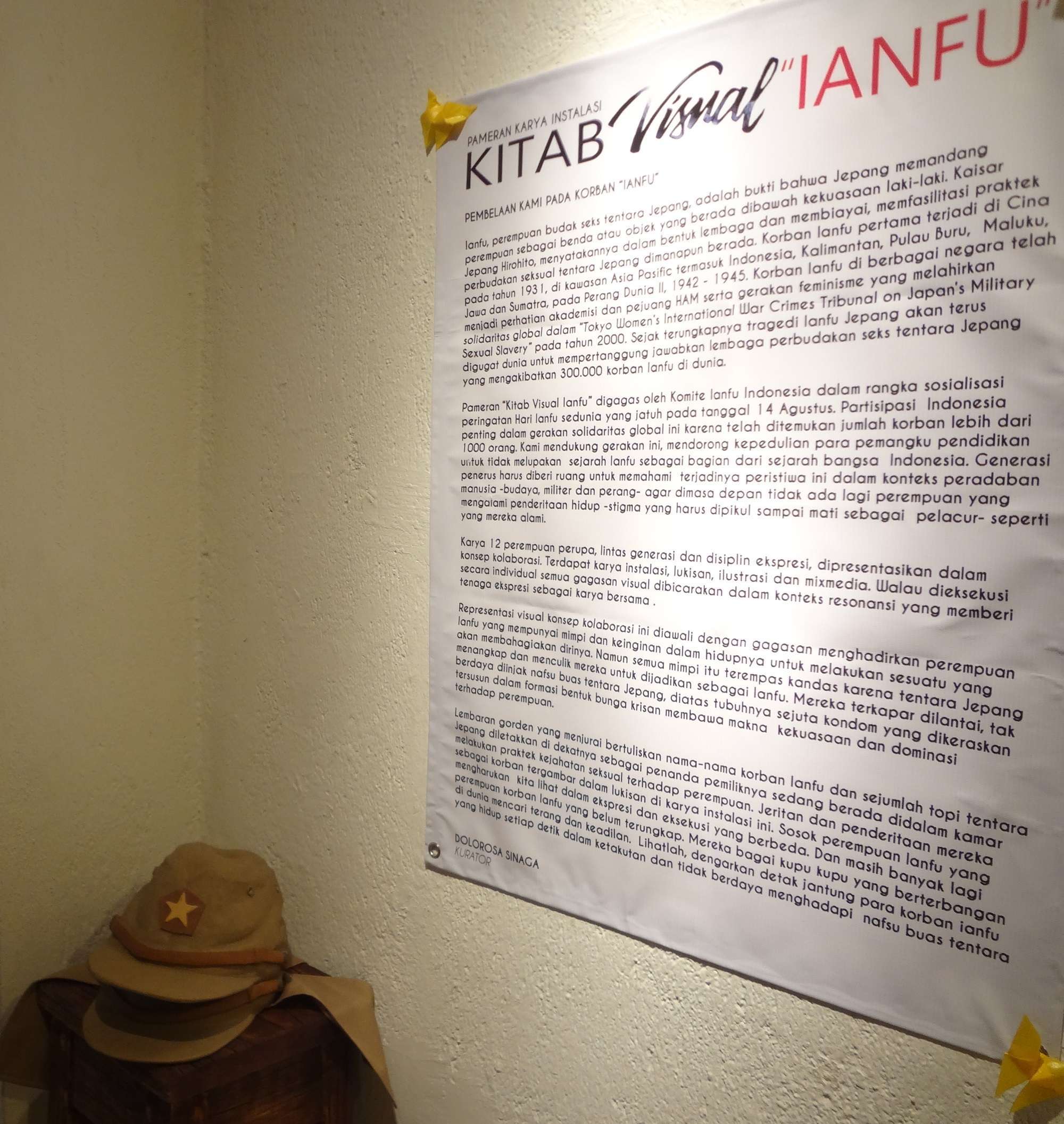 Pada tanggal 9 Maret 1942, penjajah Belanda secara resmi menyerah kepada tentara Jepang di Kalijati setelah kehancuran armada sekutu di Laut Jawa membuat Belanda tak kuasa lagi mempertahankan posisinya di Jawa. Maka dimulailah pendudukan Jepang di Indonesia yang dibungkus dengan harapan pembebasan bangsa Asia dari penjajahan Barat, namun nyatanya tak kalah eksploitatif. Di tahun 2017 ini telah genap 75 tahun sejak peristiwa Kalijati. Dalam momen peringatan ini marilah kita mengenang salah satu peninggalan paling kejam dari imperialisme Jepang: jugun ianfu. Sejarah ianfu ini juga sempat diangkat dalam sebuah pameran seni instalasi bertajuk Kitab Visual Ianfu di Jakarta pada Agustus 2016 silam untuk memperingati Hari Ianfu Sedunia, yang kemudian sempat saya kunjungi.