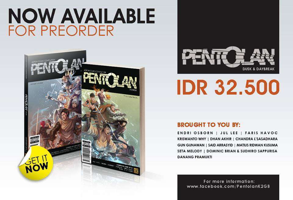 Sebagaimana disebutkan sebelumnya, Pentolan akan dibagi menjadi 2 jilid kompilasi komik yang berbeda: DAYBREAK dan DUSK, dan akan menampilkan sejumlah komik aksi oneshot karangan sederet nama-nama komikus-komikus muda berbakat seperti Chandra L’Sasadhara, Danang Pramukti, Dhan Akhir, Dominic Brian & Sudhiro Sappurisa, Endri Osborn, Faris Havoc, Gun Gunawan, Jul Lee, Kriswanto Why, Matius Ridwan Kusuma, Said Arrasyid, dan Seta Melody.