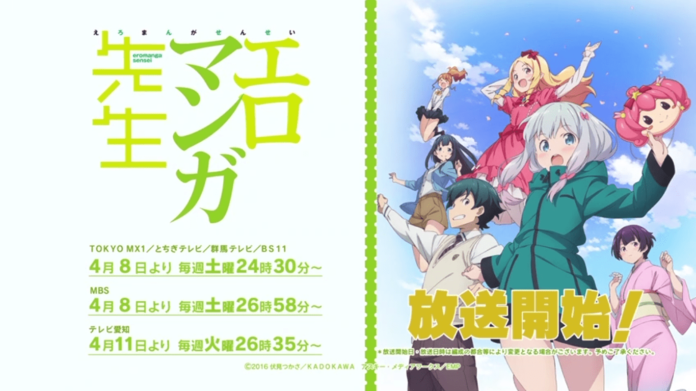 Sebagaimana sempat diberitakan sebelumnya, Eromanga Sensei, serial novel karangan Tsukasa Fushimi yang diilustrasikan oleh Hiro Kanzaki akan diadaptasi menjadi sebuah anime. Jika tidak ada halangan, maka anime ini akan memulai debutnya di Jepang pada tanggal 8 April mendatang.