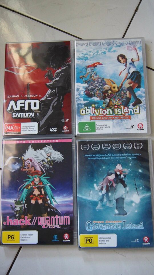Walaupun harganya lebih gila, saya sering menemukan barang-barang yang tergolong langka di Indonesia. Misalnya, komik dan novel ringan, baik terjemahan bahasa Inggris terbitan Yen Press atau berbahasa Jepang asli. Salah satu barang langka yang saya temukan adalah komik karya Tomoya Haruno, D-Frag! terbitan Seven Seas Entertainment di toko kultur pop Minotaur, Melbourne. Mata saya langsung terbelalak dengan label harga yang tertempel di plastik sampul buku tersebut: AU$40 untuk sebuah komik. Mungkin bagi para penggemar berat, mengeluarkan uang sejumlah itu bukanlah masalah asal dapat memuaskan egonya. Bagi saya? Nah, thanks mate. Selidik punya selidik, buku-buku terjemahan tersebut berasal dari Amerika. Hal ini cukup menjelaskan kenapa harganya bisa semahal itu untuk sebuah komik.