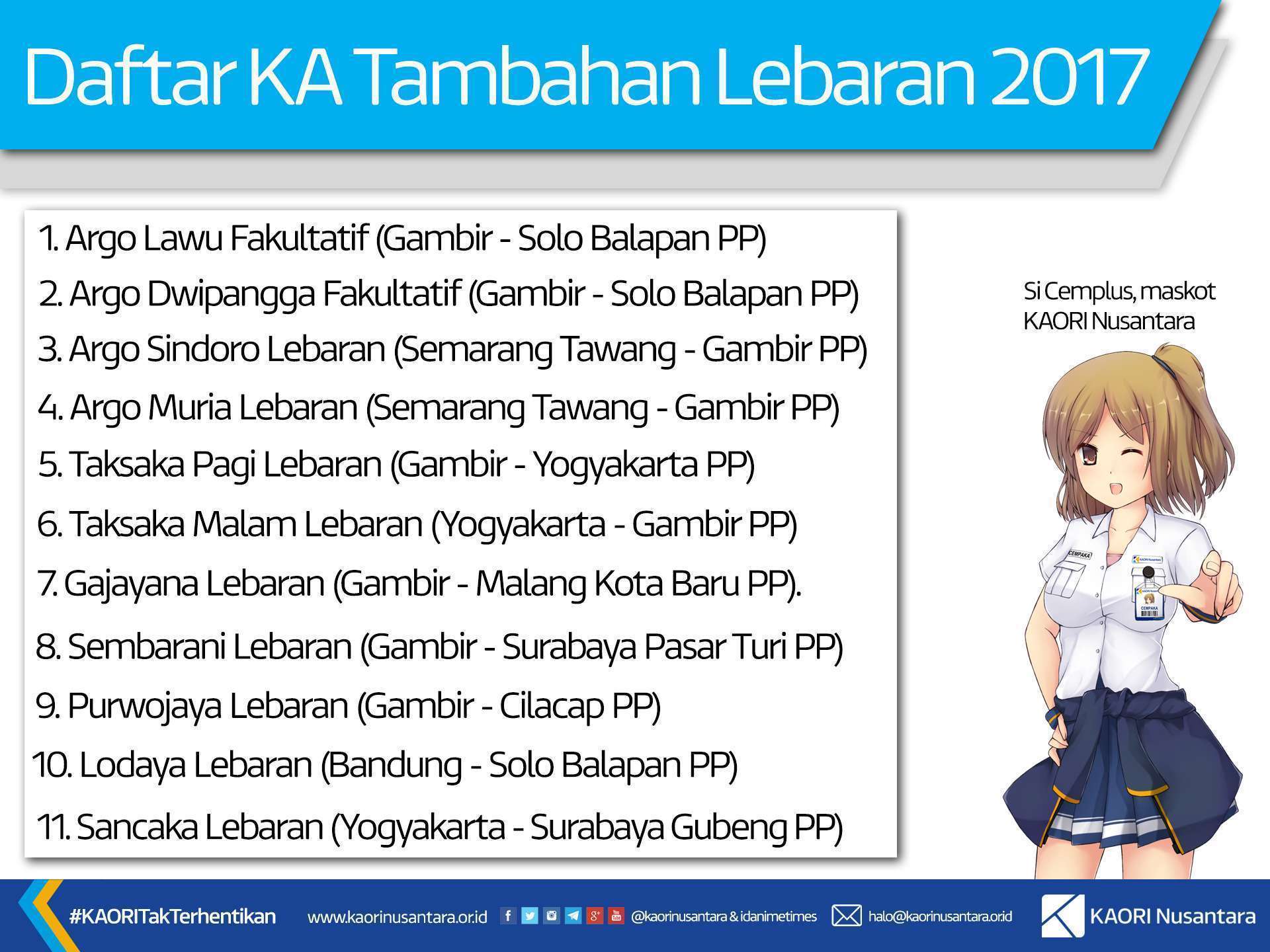 Ada pun daftar kereta – kereta tambahan tersebut adalah sebagai berikut: