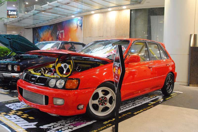 Selain itu ada Toyota Corolla yang grill-nya diganti dengan grill Toyota Corolla khusus pasar Jepang. Perbedaannya ada pada logo di grill serta beberapa komponen yang berasal dari mobil JDM tersebut. Dengan penampilan seperti itu, mobil tersebut masih bisa dipakai secara harian atau paling tidak relatif masih bersahabat dengan kondisi jalanan di Jakarta pada umumnya.