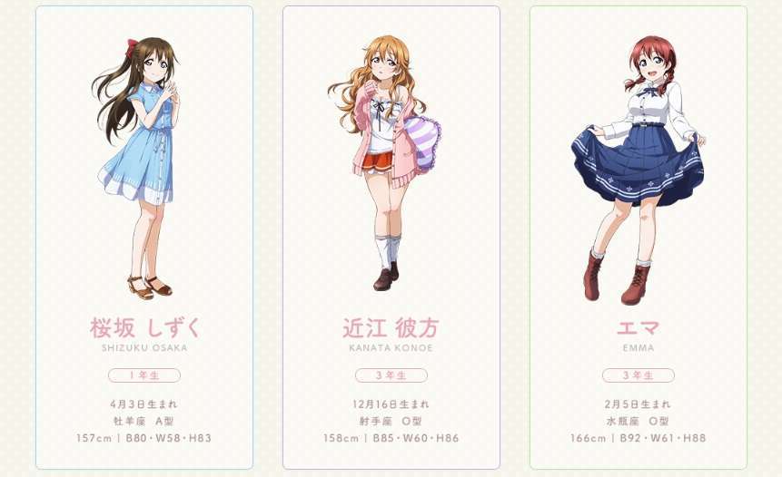 Masih belum jelas apakah grup Perfect Dream Project ini hanya akan beranggotakan ketiga dara tersebut, ataukah akan ada lebih banyak lagi anggota lainnya yang akan diumumkan kemudian. Baik Shizuku, Kanata, dan Emma sendiri sudah tersedia di game ini sebagai karakter tambahan, namun belum memiliki suara.