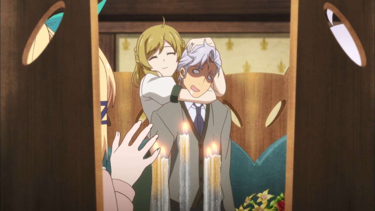 Selain itu, sosok pak guru yang memiliki aura Kazuma (Konosuba) juga makin diperkuat dengan banyaknya adegan-adegan bermuka bodoh di sini. Ekspresi smug face pak guru banyak bisa kita lihat di sini.