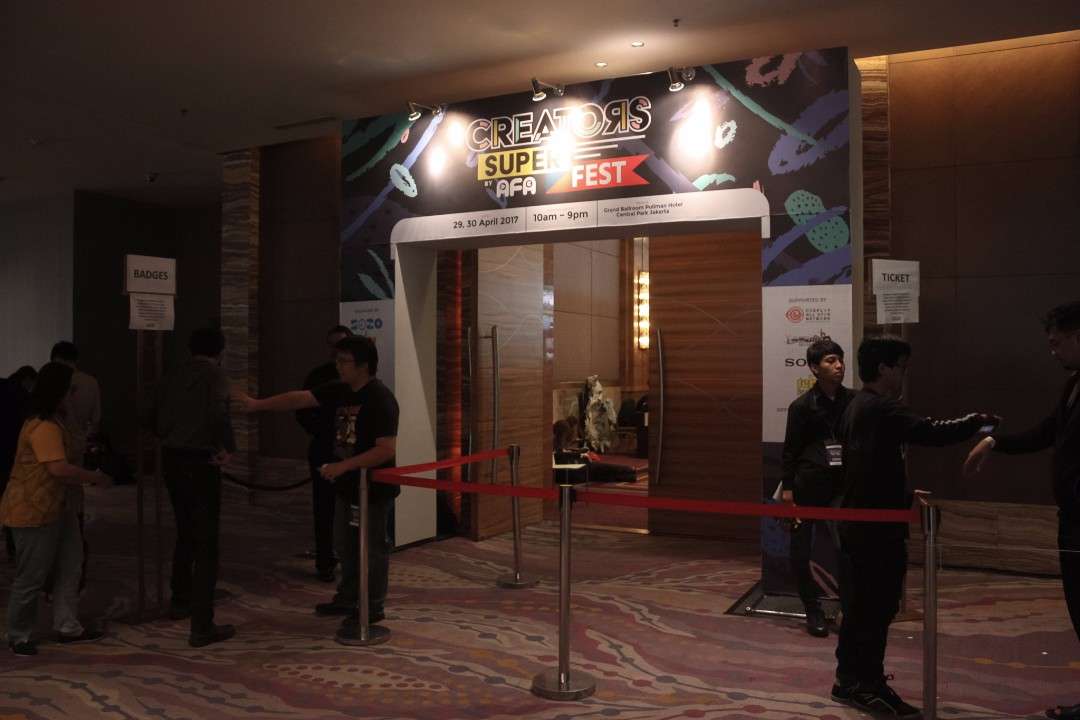 Sedikit berbeda dengan acara sejenis dengan fokus serupa, Creators Super Fest hadir dengan rasa dan kemasan yang sedikit lebih “wah”. Harga tiket masuk yang dipatok sedikit lebih tinggi dan acaranya digelar di ballroom salah satu hotel berbintang di Jakarta. Suasana di di dalamnya pun terasa seperti perhelatan tahunan Anime Festival Asia (AFA) yang digelar dengan skala yang lebih kecil. Berbeda dari AFA, booth untuk para kelompok lingkar kreatif mendapat porsi sedikit lebih besar di sini. Berbagai booth korporat dengan ukuran lebih besar juga tetap meramaikan acara ini.