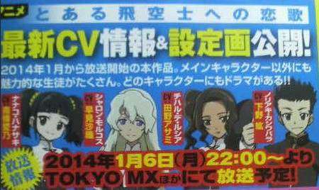 Hiro Shimono, Yoshino Nanjo, Saori Hayami, dan Asami Tano bergabung dalam jajaran pengisi suara yang akan berpartisipasi dalam seri anime yang akan datang, Toaru Hikuushie no Koi Uta. Seri anime yang diadaptasi dari novel ringan ini akan mengudara di stasiun televisi Jepang mulai januari 2014 mendatang.